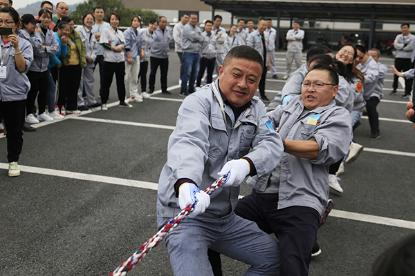 隨后,開始趣味集體項目的比賽,由奮勇向前接力、多人握桿走“8”字以及拔河三個單項組成,既考驗了團隊協作能力,又是團隊力量的大比拼。賽場上,大家熱情飽滿、斗志高昂,各個項目競爭激烈、精彩紛呈,充分展現了福斯特員工拼搏向上的良好風貌,增進了各個工會小組之間的交流,賽出了風格、賽出了水平、賽出了友誼!