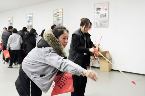 與此同時,寫福字、夾“湯圓”、投壺項目也在如火如荼地進行?!皩懜W帧⒄锤狻⒓{百?!?,祈愿福運當頭、萬事順遂;投壺作為一項傳統的娛樂活動,具有送祝福的寓意,體現了人們對美好生活的向往;夾“湯圓”則是在規定時間內將“湯圓”夾入碗中,象征幸福團圓。職工們體驗完成四個項目,紛紛到禮品兌換處挑選自己心儀的小禮品,大家其樂融融、盡興而歸。