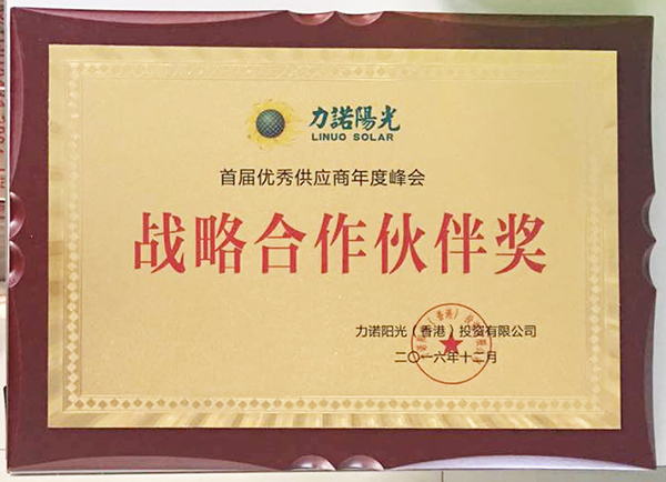 福斯特榮獲2016年度力諾陽光戰(zhàn)略合作伙伴獎(jiǎng)
