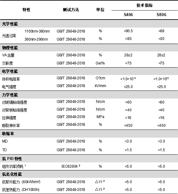 1)出色的抗酸化能力和電池保護能力,實現(xiàn)光伏組件長期可靠工作;